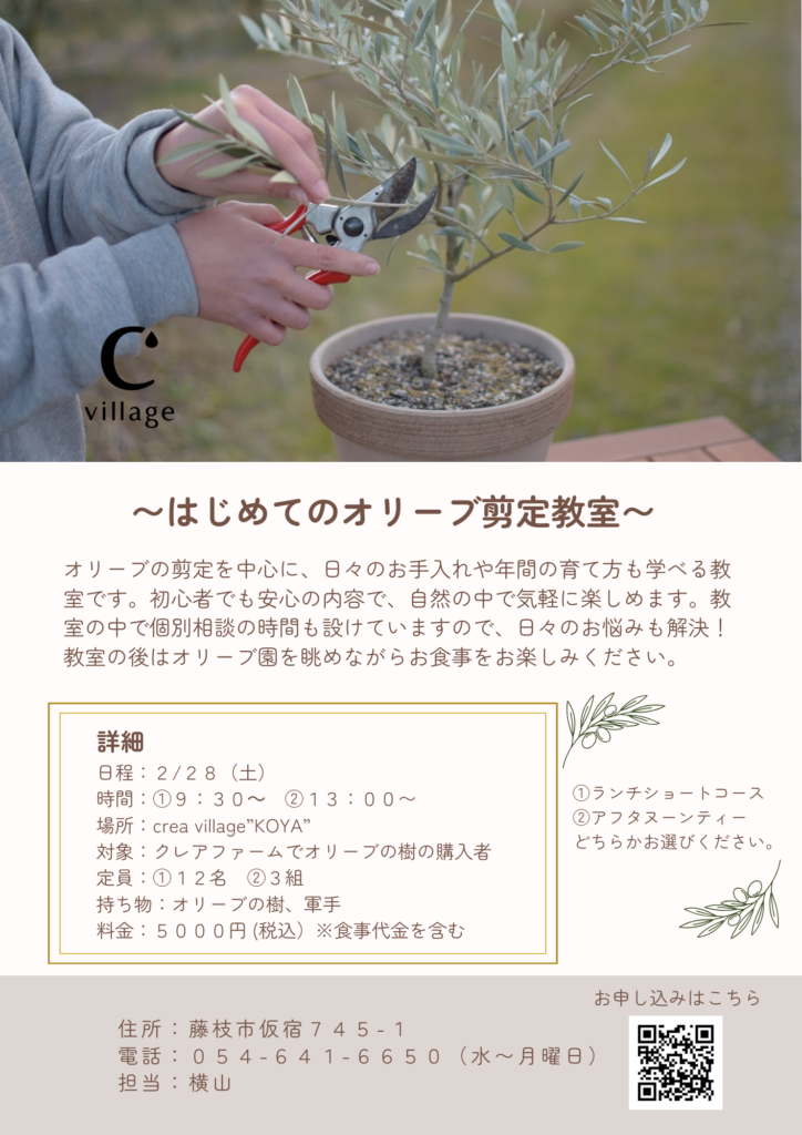 【2/28開催】〜はじめてのオリーブ剪定教室〜 初心者の方大歓迎!