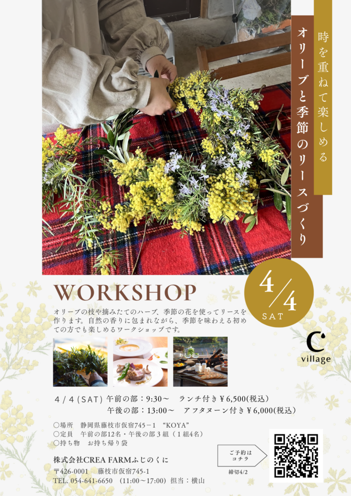 【4/4(土)開催】オリーブと季節のリースづくり